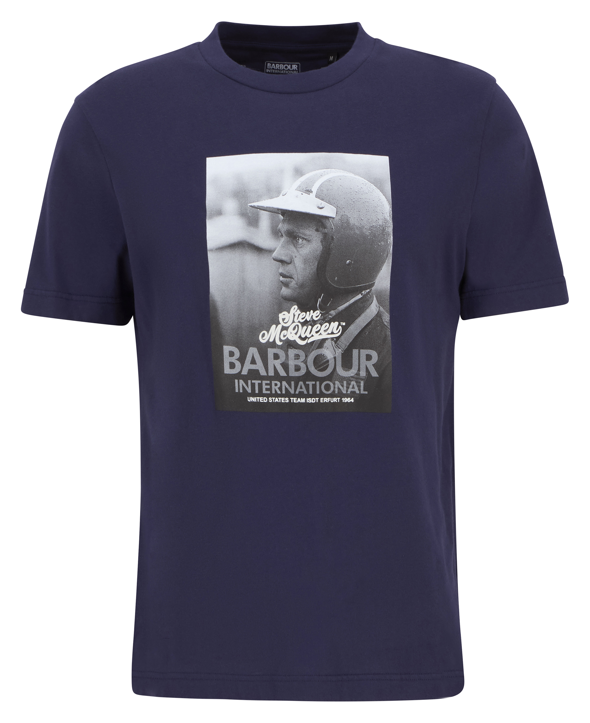 En 1964, Steve McQueen et le reste de l'équipe américaine ont fait escale à Londres pour acheter leurs combinaisons Barbour International avant de se rendre en Allemagne de l'Est pour participer aux Six Jours Internationaux de 1964. Ce t-shirt représente l'héritage Steve McQueen.