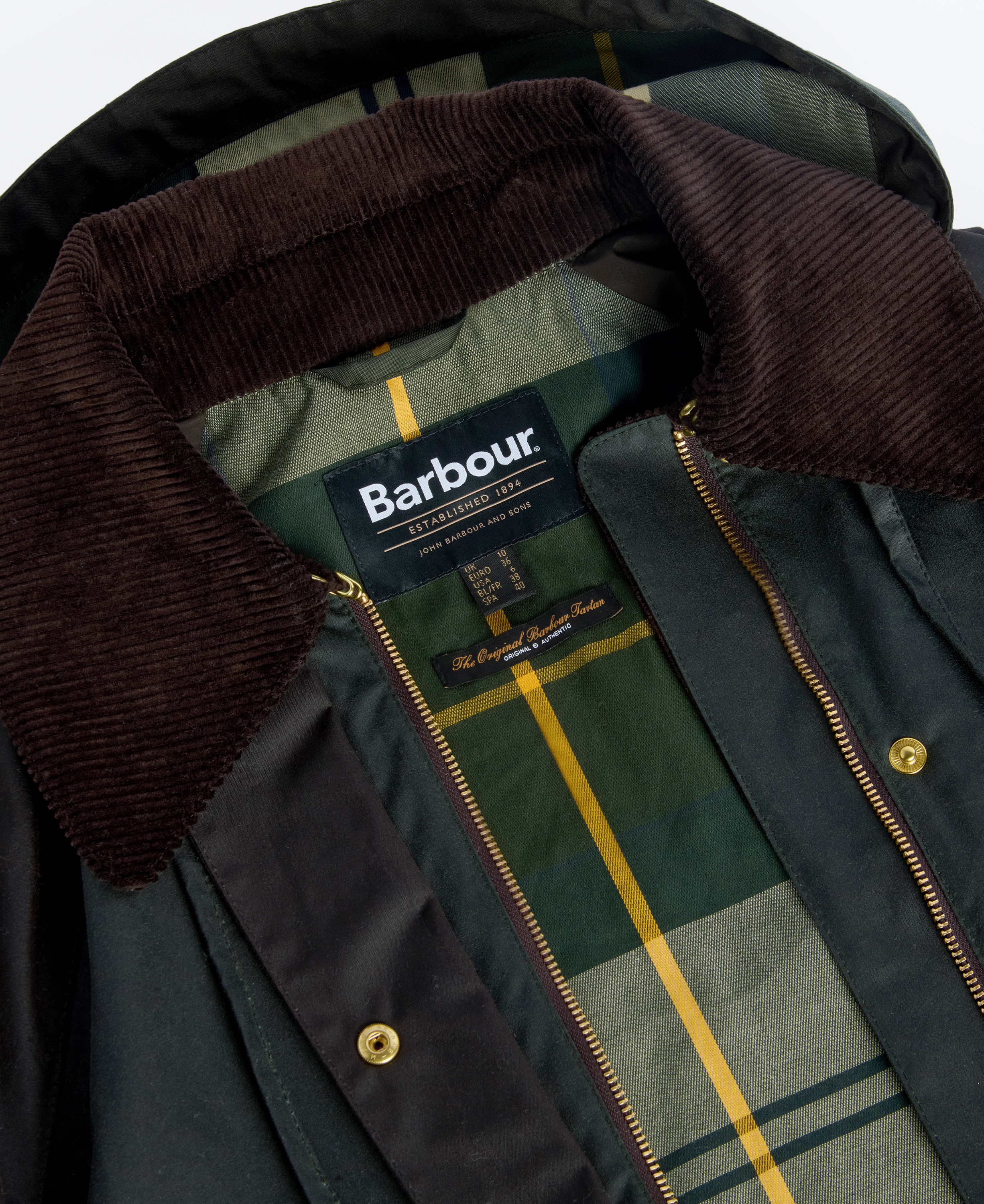 Inspirée de notre veste cirée Spey la plus appréciée, la veste cirée Barbour Reighton Spey présente tous les détails classiques tels que la patte à anneau en D sur la poitrine et la capuche fixe. Elle est dotée d'un col oversize en velours côtelé pour une touche contemporaine et de bordures en tartan aux poignets pour une finition ludique.